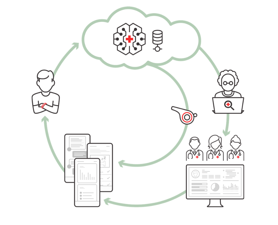 all.health's Integrated Continuous Management (ICM™) captures and correlates continuous vital sign information and scans for elevated risk of over 50 health conditions — including respiratory infections, diabetes, hypertension, arrhythmias, sleep apnea and behavioral health factors. It helps coach the individual based on their evolving health profile and suggests possible next best steps to coach.