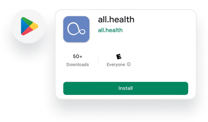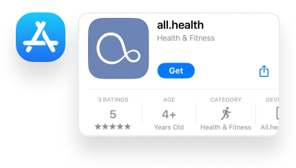 Downloading The all.health App August 19, 2024 11:34 Updated iPhone Go to “App Store” Search “all.health” or click link to direct you: all.health Press “Get” Note: Download the blue app, not the black "legacy app. android Go to “Google Play Store” Search “all.health” or click link to direct you: all.health Press “Install”