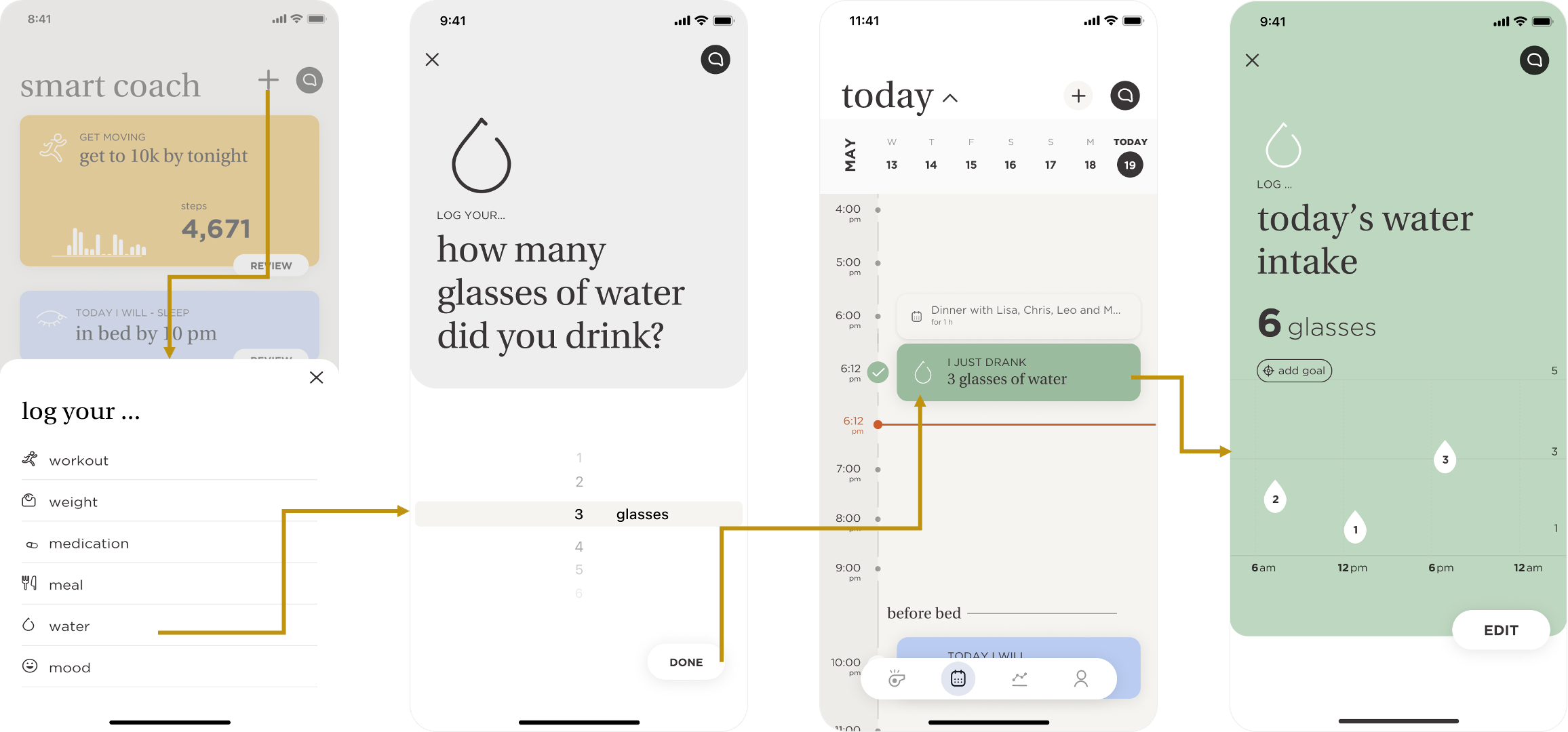 - Tap on “DONE” button to log your water intake.