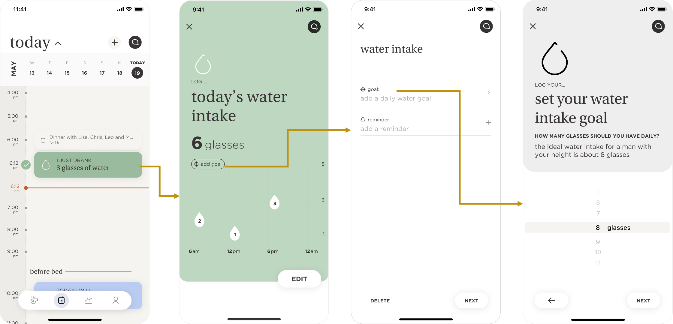 - Tap on “add goal” button to specify the number of glassed you planning to drink daily.