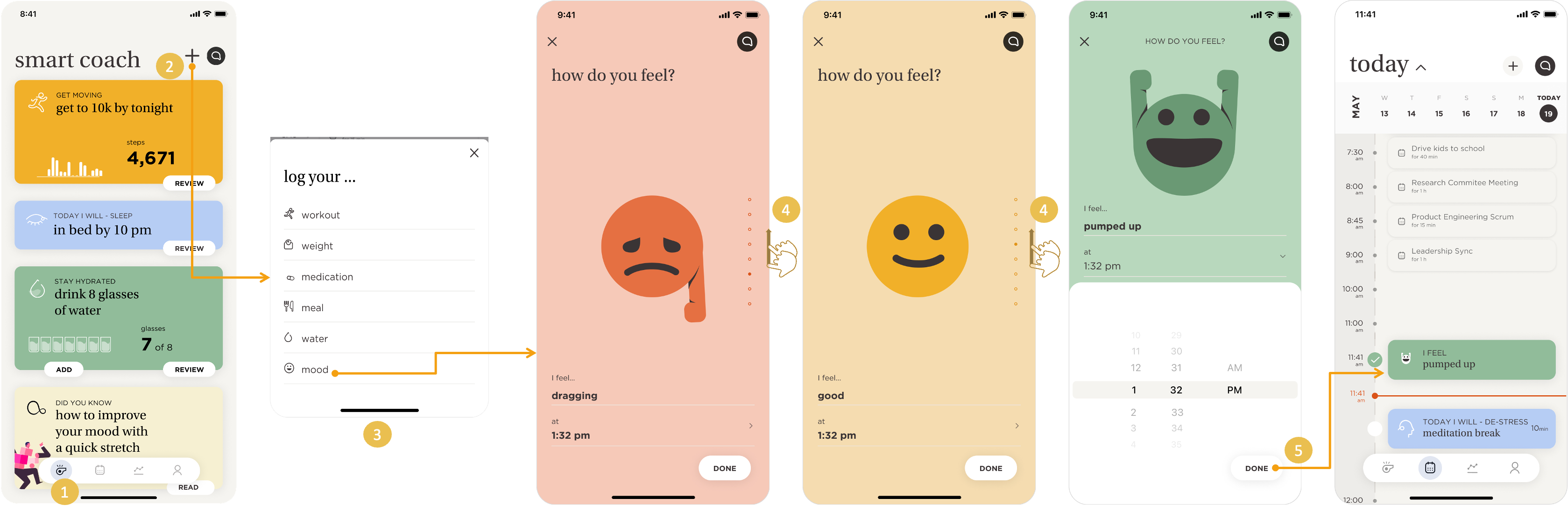 - Specify the time and tap on “DONE” button, once you submitted your mood it will show up in the calendar
