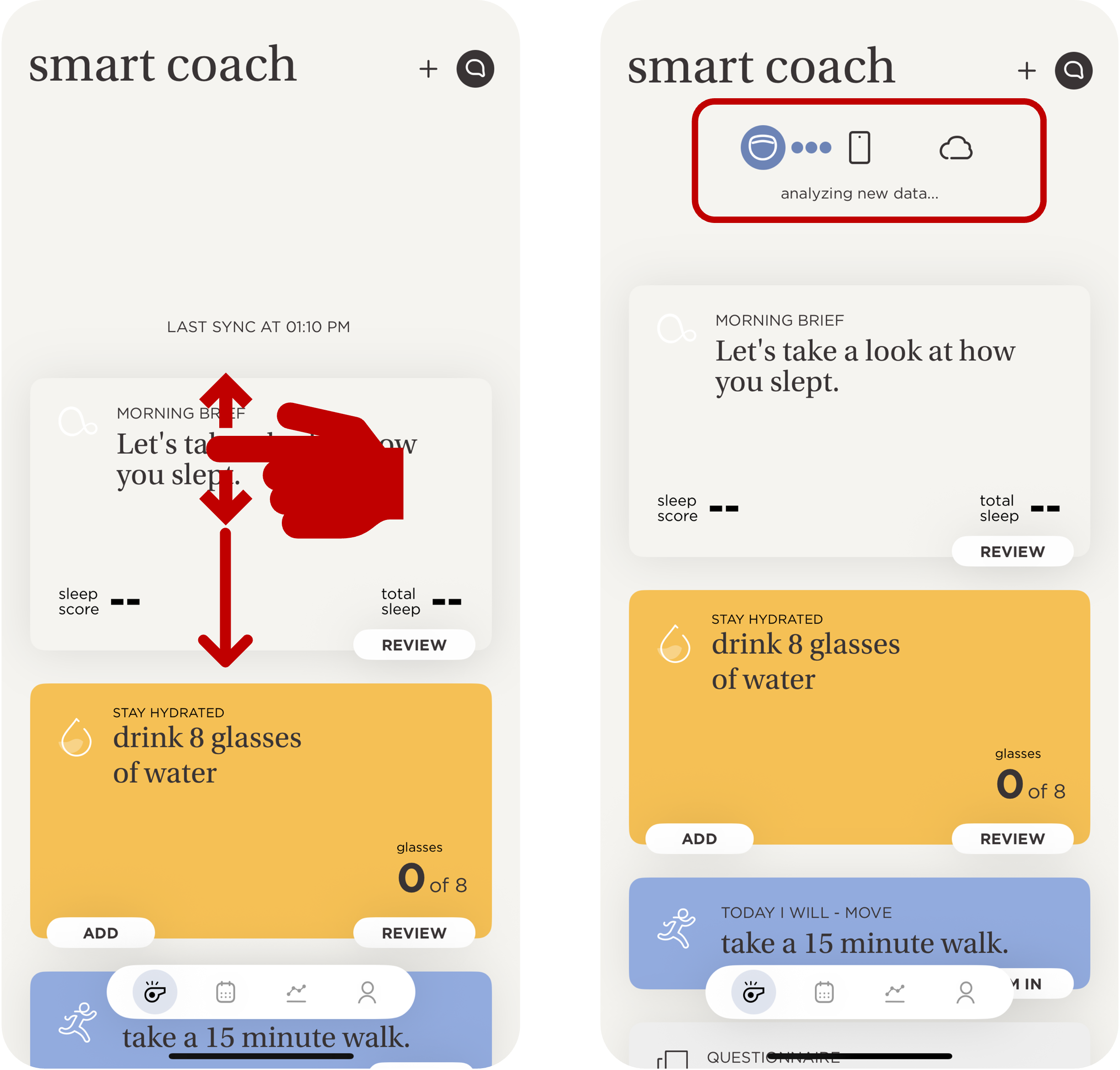 - Open the app, then pull down on the SmartCoach screen and release it.