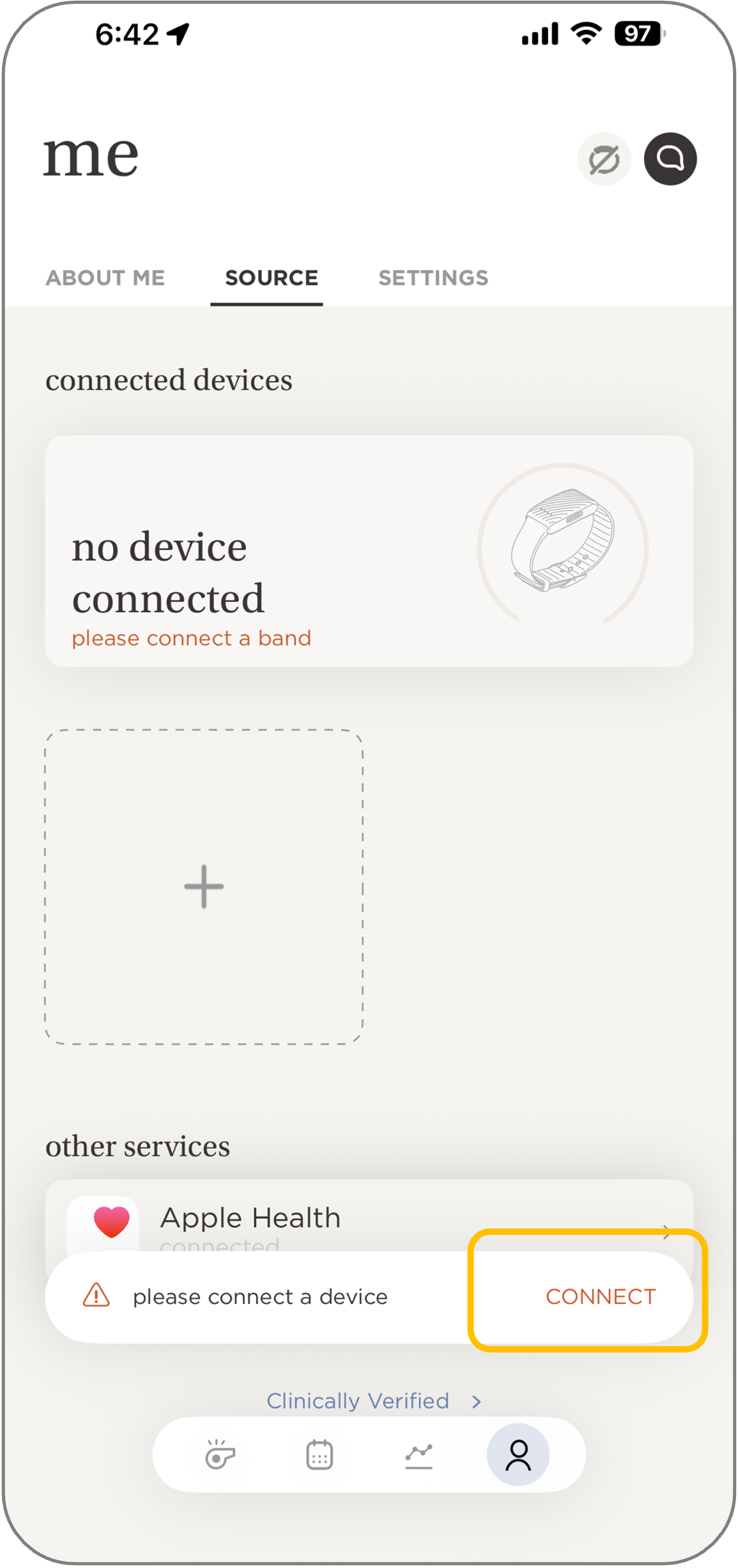 - If you are re-pairing the band, tap the “Person” icon at the bottom right of your screen.