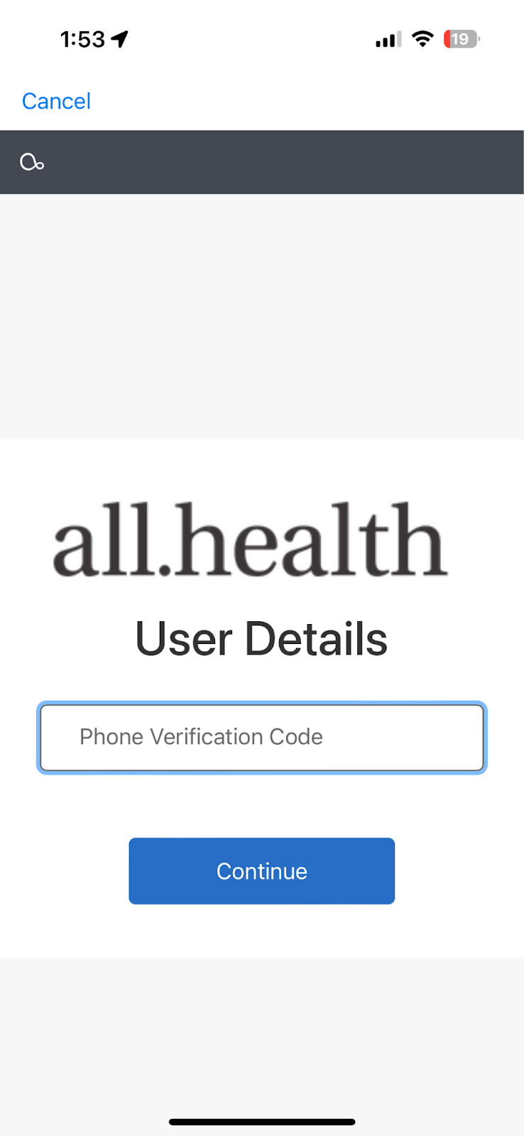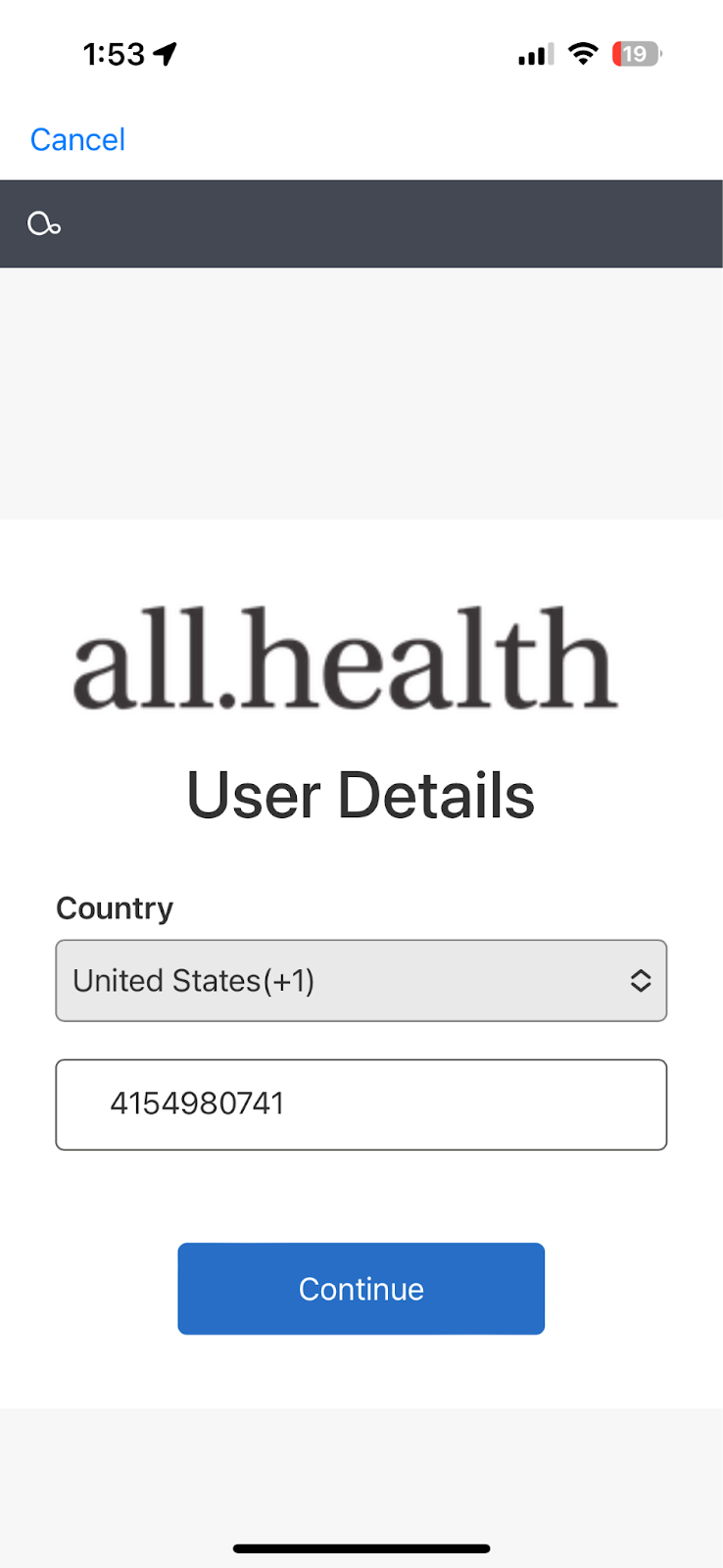 Logging into the all.health app