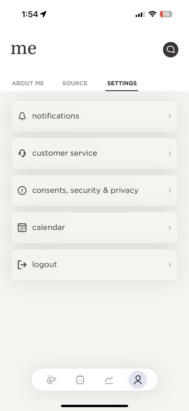 - In the “me” page, select “Settings.”