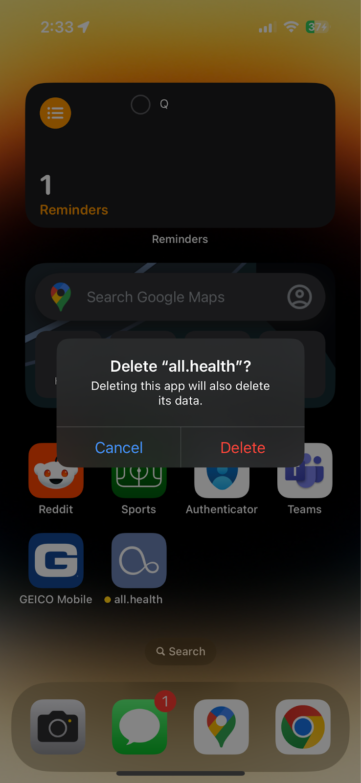 - Uninstall the all.health app from your mobile device.