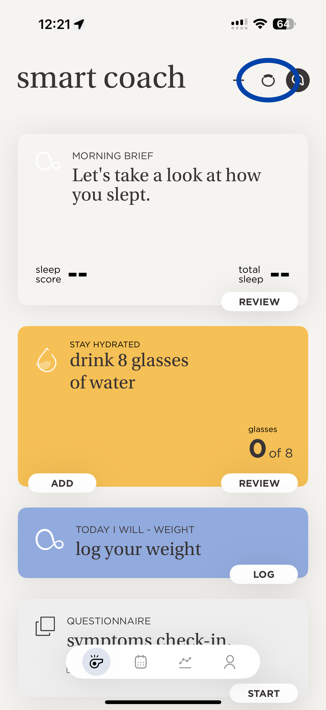 You can check the band’s sync and connectivity status from the smart coach screen by looking at the band icon in the upper-right corner.
